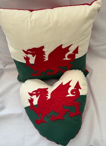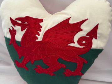 A heart shaped fun version of the Welsh Flag cushion.