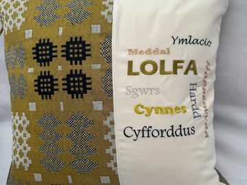 These cushions were a pleasure to put together and make attractive decorations for the home. The catref, lolfa and swyddfa cushions use wording that I appealed to me, but it can be adjusted to include other rooms and family groups if required.